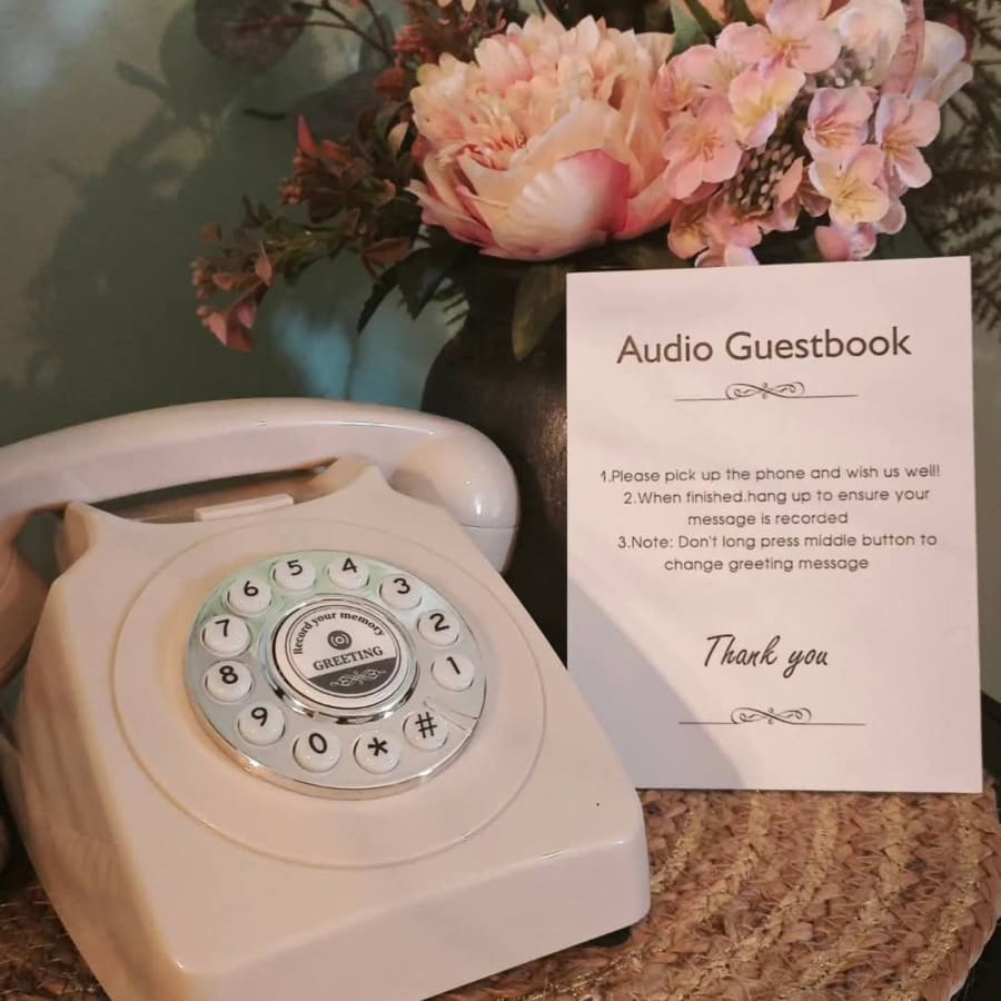 Op zoek naar een innovatieve en boeiende manier om herinneringen vast te leggen op uw volgende evenement? Ontdek de gastenfoon , een charmant alternatief voor het traditionele gastenboek dat uw gasten zeker zal verbazen. Dit verrukkelijke stuk is slim ontworpen als een ouderwetse telefoon, waardoor vrienden en familie voicemailberichten kunnen achterlaten vol met oprechte gevoelens en vreugdevolle herinneringen. 🎉