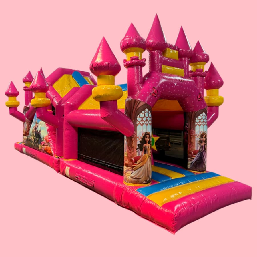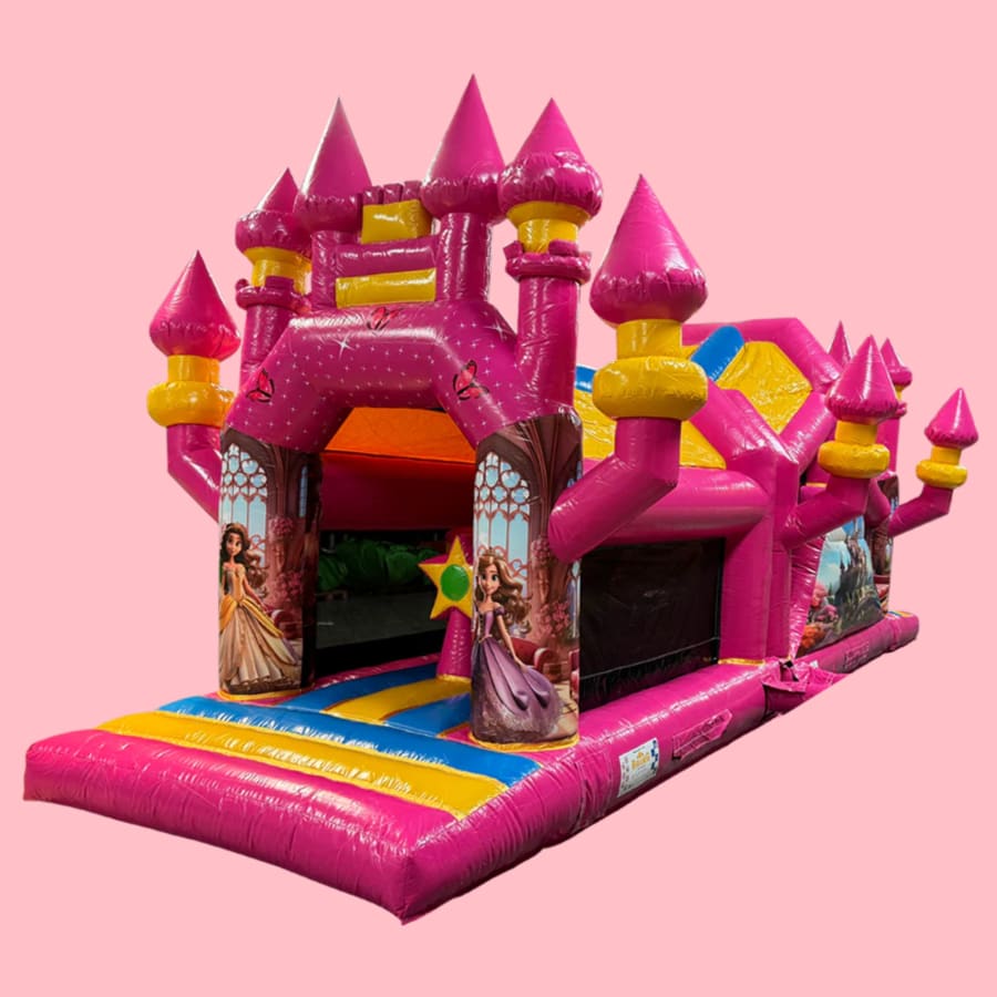 Droom weg in een magische prinsessenwereld met onze Mini Prinsessenrun! Deze compacte maar spectaculaire stormbaan is perfect voor kleinere kinderen of voor wie een beperkte ruimte heeft, zoals een kleine tuin of een indoor speelplek.